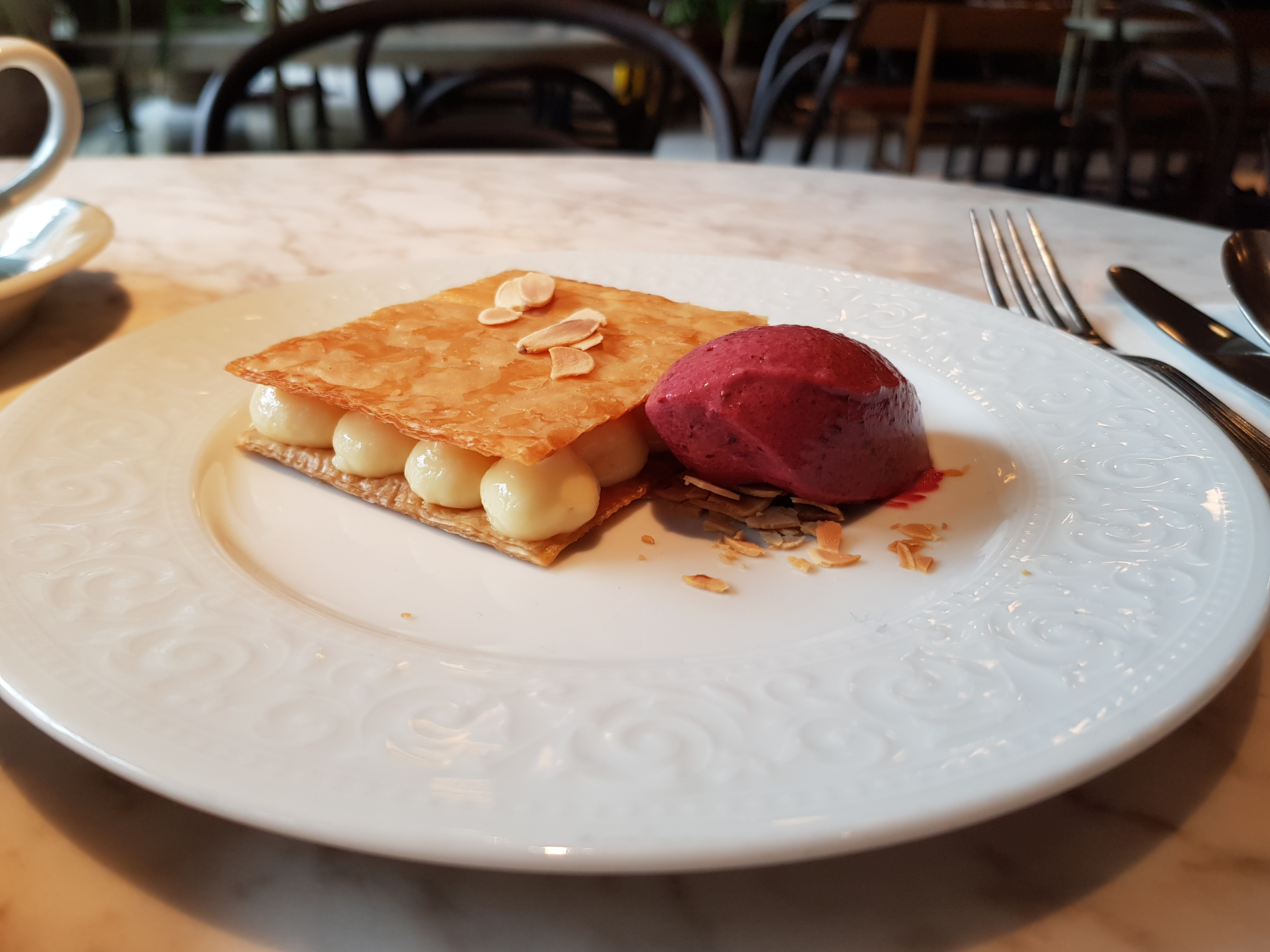 Vous pourrez y manger ou y prendre un verre. Leur café est excellent ( Filtre Kahve) et j’y ai mangé les meilleures profiteroles d’Istanbul (Crocante Profiterol)! Autre spécialité sucrée qui a fait le bonheur de mes papilles: le « laz » Böreği. J’étais curieuse de voir venir ce dessert sous forme de börek… En fait, il s’agit d’un feuilleté fourré d’une crème de chou agrémenté de gingembre, avec sa glace à la framboise. J’étais sous le charme, un vrai délice: tout en légèreté et en saveurs. Comme ses desserts, le restaurant sert de nombreux plats modernes, revisités, avec des petites touches originales: le chicken waffle, un boeuf bourguignon et sa purée et bien d’autres recettes.