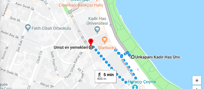 De la gare routière d’Eminönü, prendre le bus 99A et descendre à la station Unkapanı Kadir Has Üniversitesi