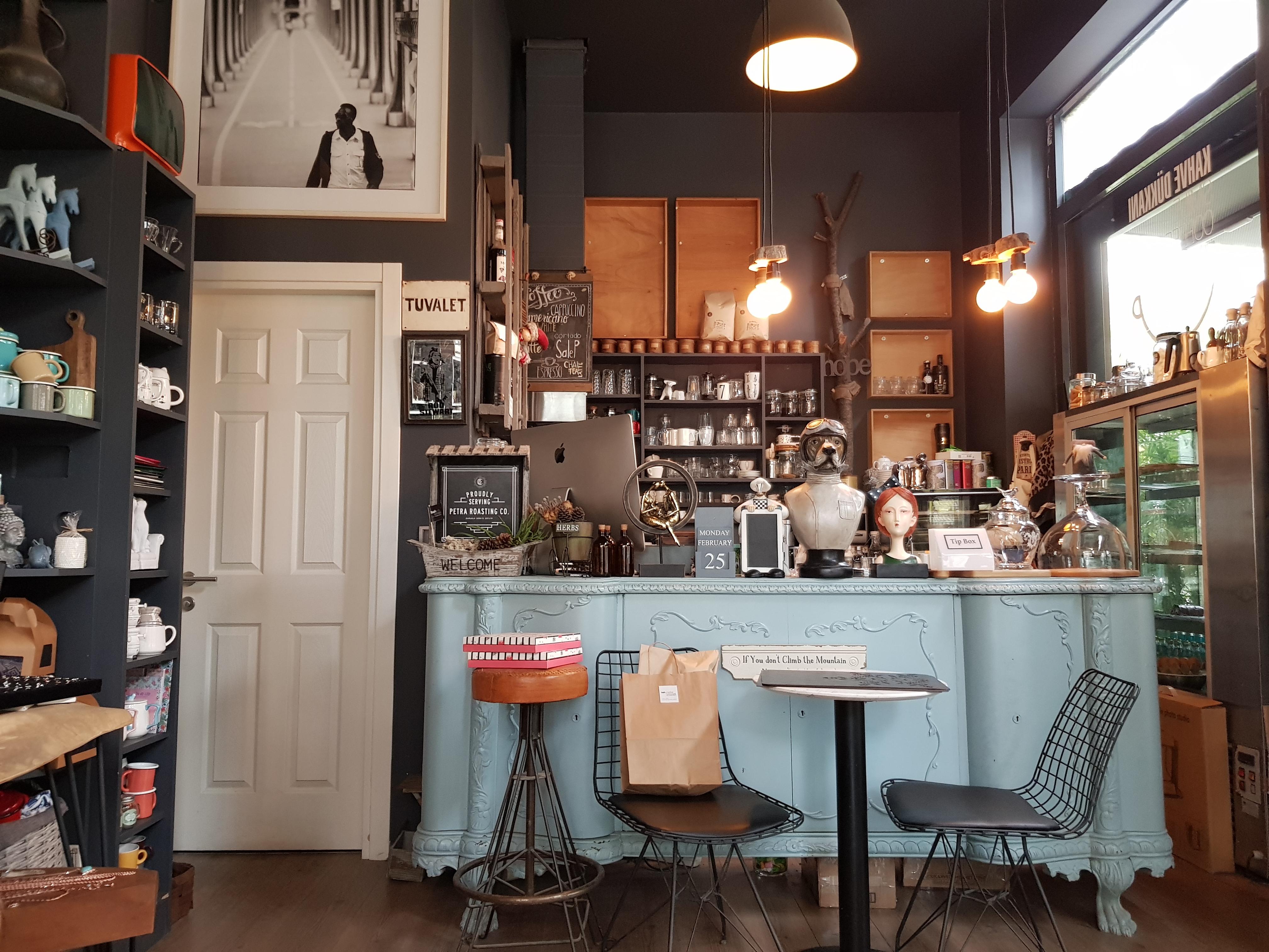 Dans cet élégant mélange d’objets, vous mangerez sur des tables qui sont chacun différentes. La grande photo du pont parisien de Bir Hakeim à Paris a été mon coup de coeur, mais aussi le magnifique comptoir (et oui mon faible pour les comptoirs, vous l’aurez deviné), ancien buffet customisé qui relève l’ambiance chaleureuse de Balkon Sefası . Petite remarque à prendre en compte, le week-end l’endroit est très vite bondé car le restaurant se trouve dans un quartier d’habitation. Rien qu’en semaine, il se remplit aisément des habitués.