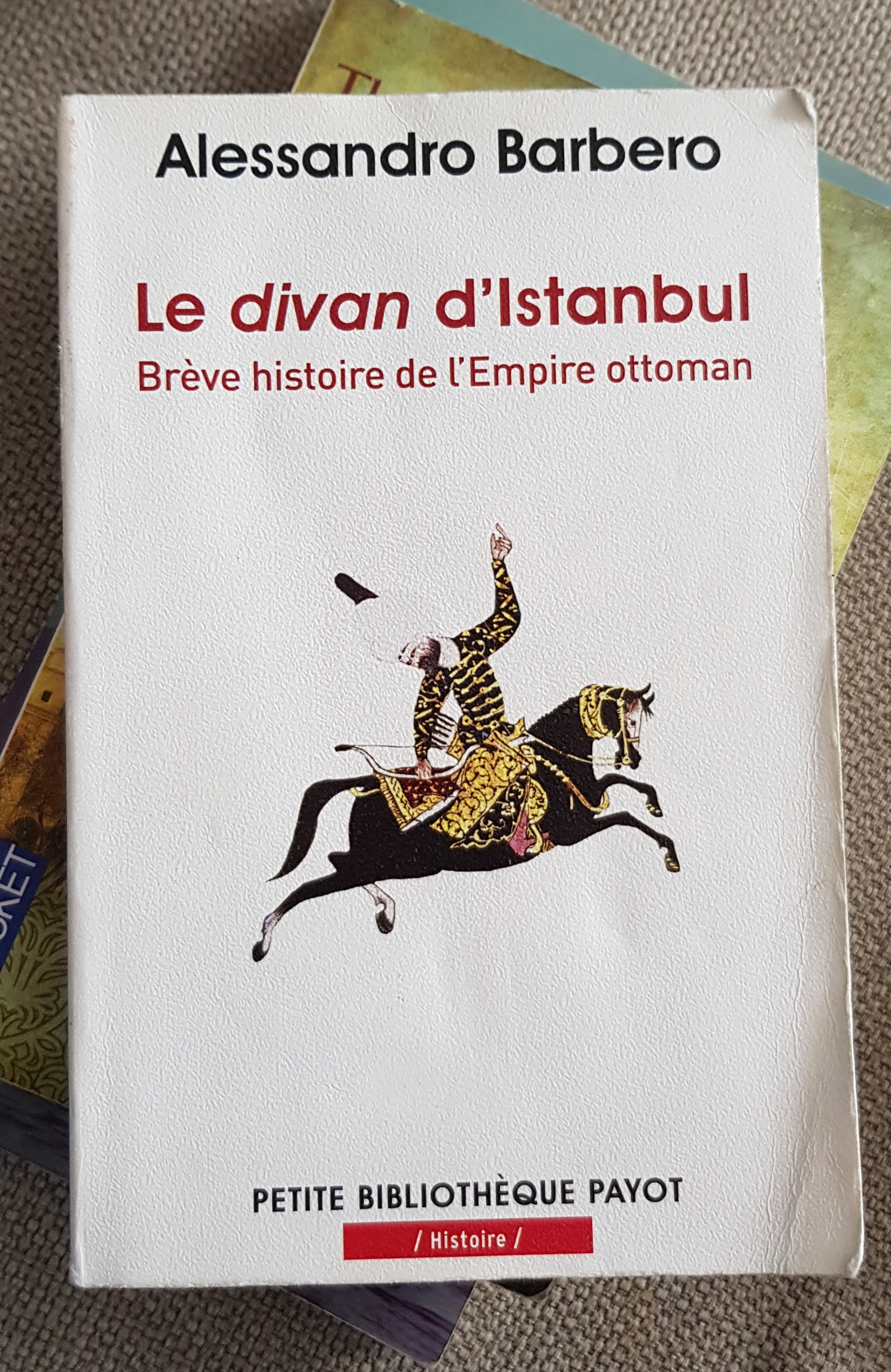 Dix siècles d’histoire ottomane sont résumés dans cet écrit de l’italien Alessandro Barbero. Une manière concise de survoler l’Empire ottoman avant ou après un voyage en Turquie. Le divan, c’est le coeur du pouvoir ottoman. Le terme français divan vient de cette institution ottomane qui voulait que le sultan et ses vizirs se retrouvent quatre fois par semaine pour prendre les décisions, les décrets du sultan appelés aussi firman. Le sultan s’asseyait sur une sorte de banquette qui est devenu notre divan moderne. Pour les décisions importantes, le sultan tenait un divan à cheval. On savait alors que le sultan préparait soit une bataille, soit un grand changement dans l’empire.