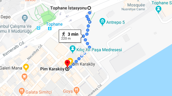 Pour s’y rendre, descendre à la station de tramway Tophane, et passez dans la rue derrière la mosquée Kılıç Ali Paşa.