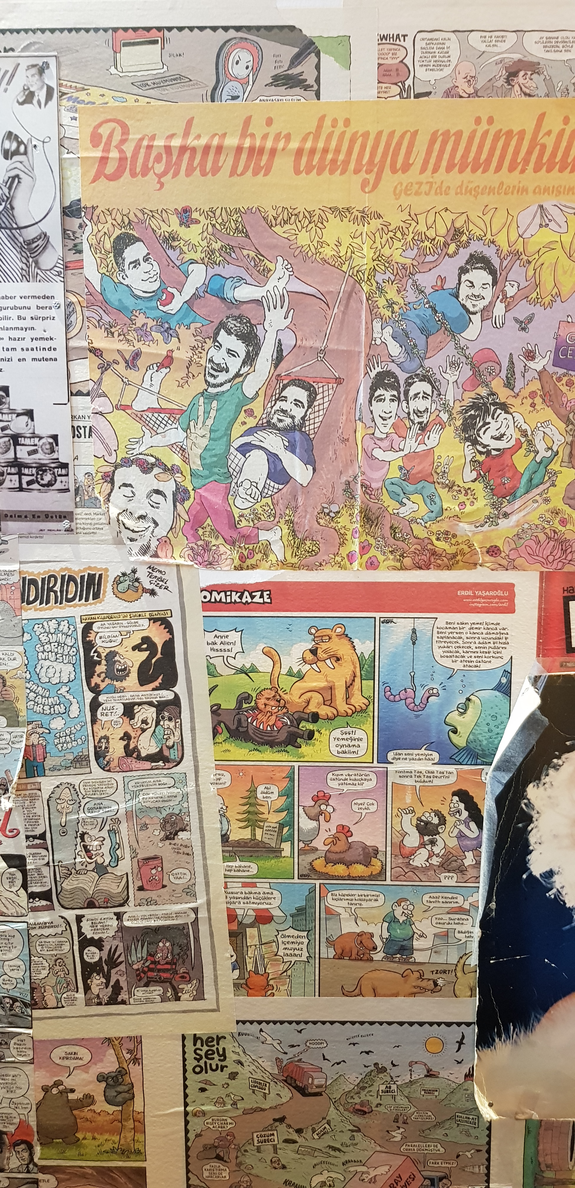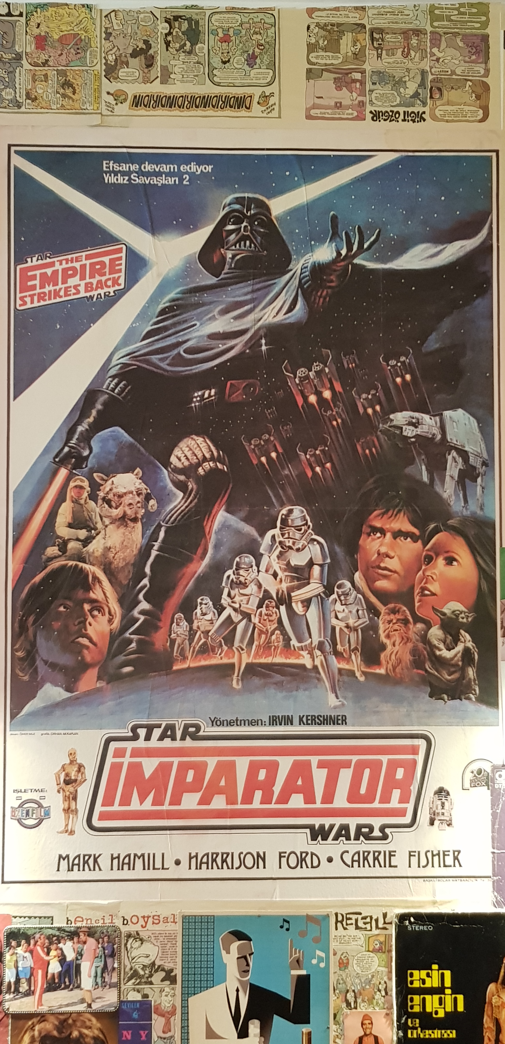 Côté déco, les murs sont tapissés d’affiches de films, de pages de bandes dessinées, de pochettes de disques ou de unes de journaux… et tout ça en turc, bien évidemment. Ma préférée, c’est l’affiche du Star Wars – L’Empire contre-attaque. Le « Imparator » est tout juste unique.