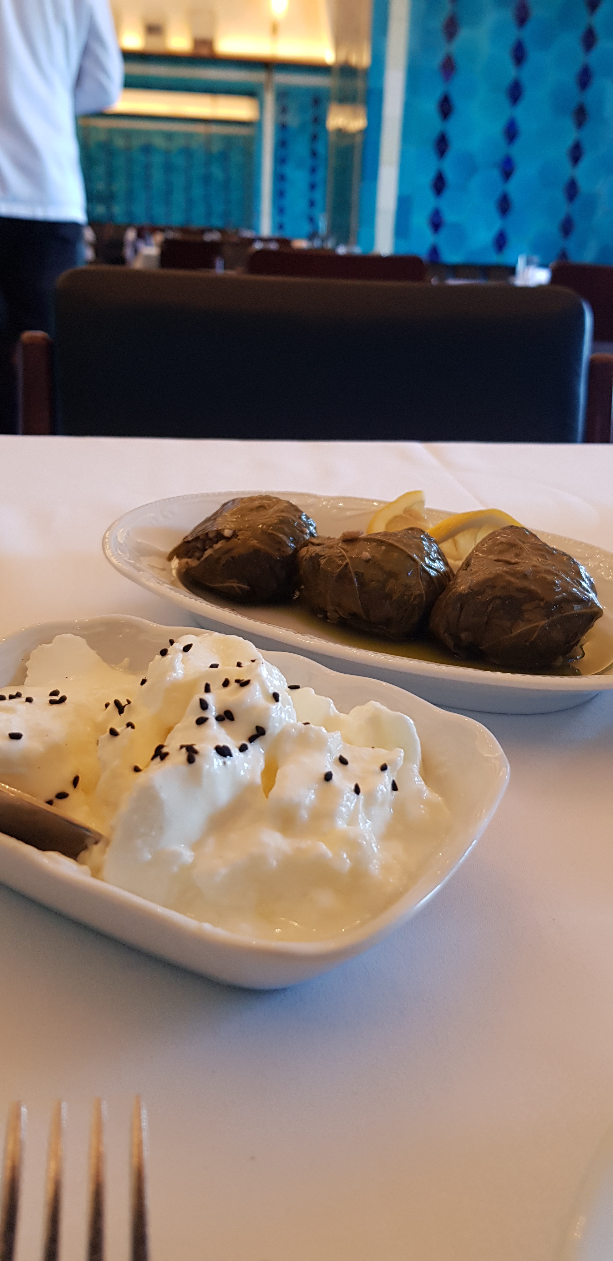 Parlons des choses sérieuses: la cuisine. Je pense sincèrement que c’est le meilleur restaurant d’Istanbul. Oui, Pandeli représente un certain standing et un niveau gastronomique élevé. Si vous souhaitez vraiment goûter de bons plats, ce restaurant est pour vous. Il a un des meilleurs yogourts que je n’ai jamais goûté, tout comme les yaprak, les feuilles de vigne farcies au riz. Pour une entrée en matière, j’étais servie! Moi qui n’aime pas la viande, j’ai quand même opté pour le Hünkâr beğendi. Ce plat issu de la cuisine ottomane est fait à partir de morceaux de viande d’agneau et d’une purée d’aubergines fumées. Un vrai régal, pour mes papilles.