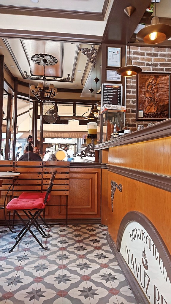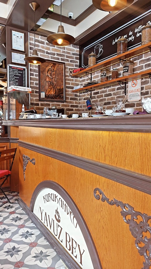 Ici, à Istanbul, le café est turc et il est fait partie du quotidien des Stambouliotes. Fermez les yeux et humez l’odeur du café dans la rue. Fermez les yeux et tentez de trouver ce kahveci de Kadiköy dont les gestes traditionnels donnent ce si bon café turc que chacun cherche à Istanbul. Ce petit café existe. Vous le trouverez donc dans le quartier animé de Kadiköy. Plus qu’un café, Kurukahveci Yavuz Bey est une institution incontournable à Kadiköy pour tester et savourer un café turc à l’ancienne. Les propriétaires et les serveurs sont tellement accueillants et bienveillants, qu’on a envie de passer son après-midi à boire du café, mais aussi du sahlep ou un thé. Car le café fait de toutes les boissons chaudes turques son affaire. Et leurs prix sont convenables!